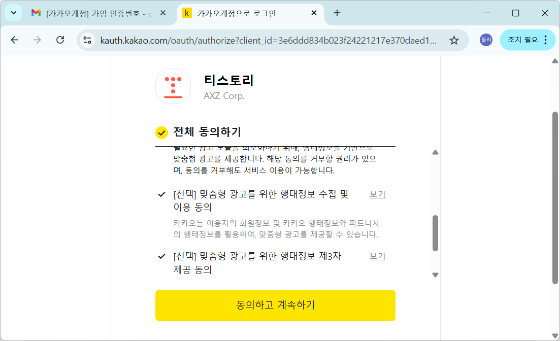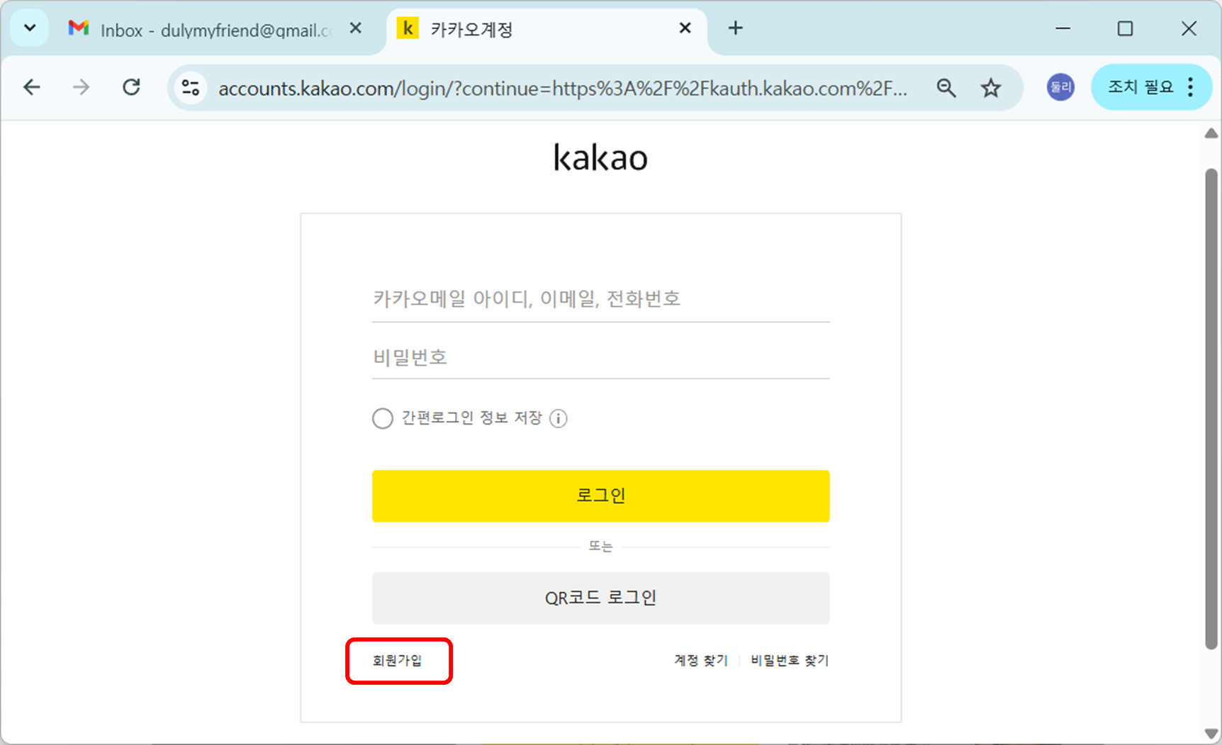 3. [이메일이 있습니다]를 누르고, 카카오 약관 동의를 누른 후