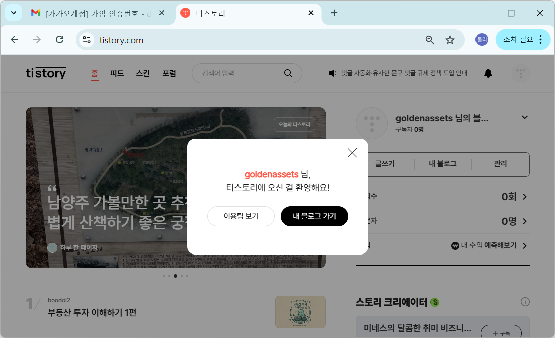구글 계정으로 티스토리 블로그 가입하기