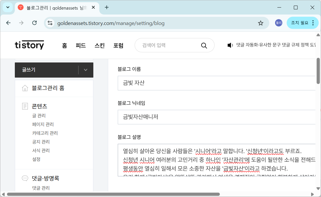 티스토리 기본 설정하기